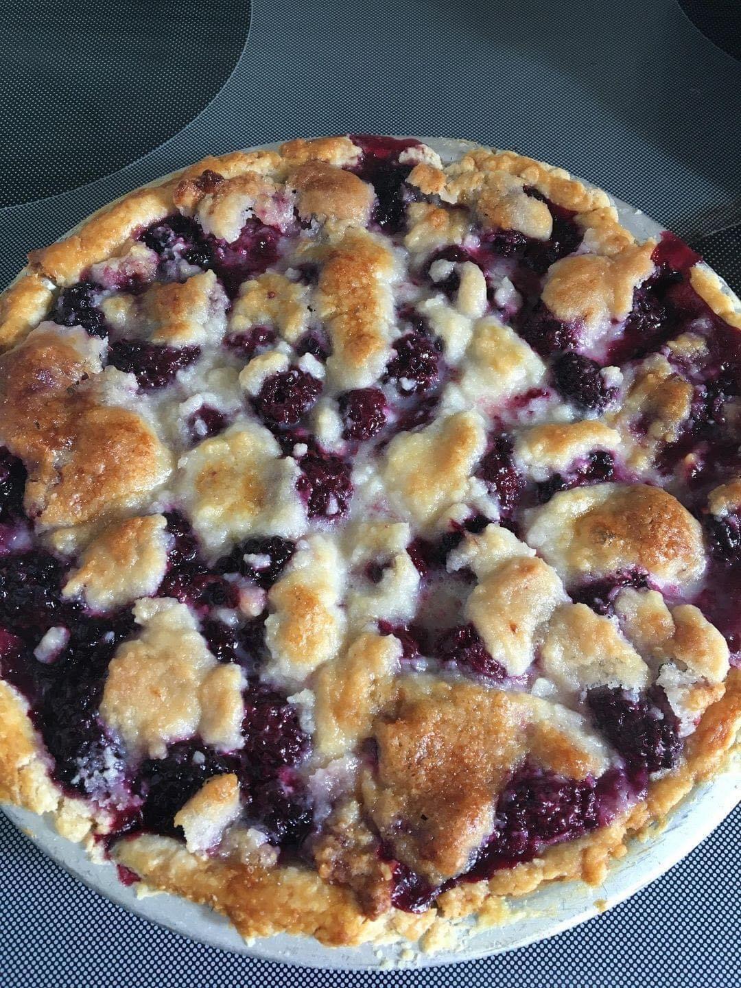 Spoon the berry mixture on top and bake for 40-50 minutes until golden brown.