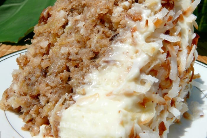 In a bowl, mix all of the dry ingredients together and mix the eggs, vanilla and crushed pineapple with juice until well combined.