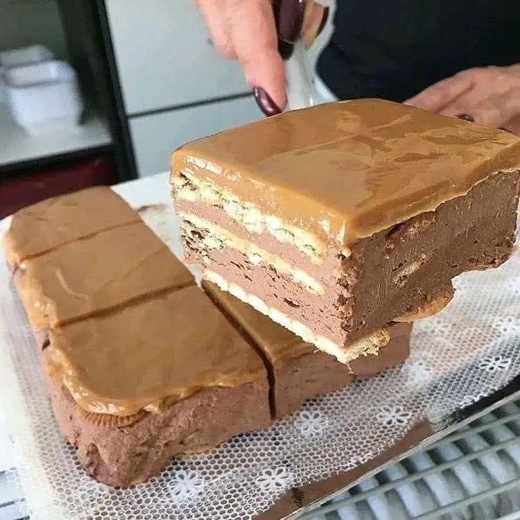 3) To make the base of the chocolate marquise, soak the cookies in milk and place them superimposed on the bottom of a glass mold, making a layer on which to pour the pudding.โฃ