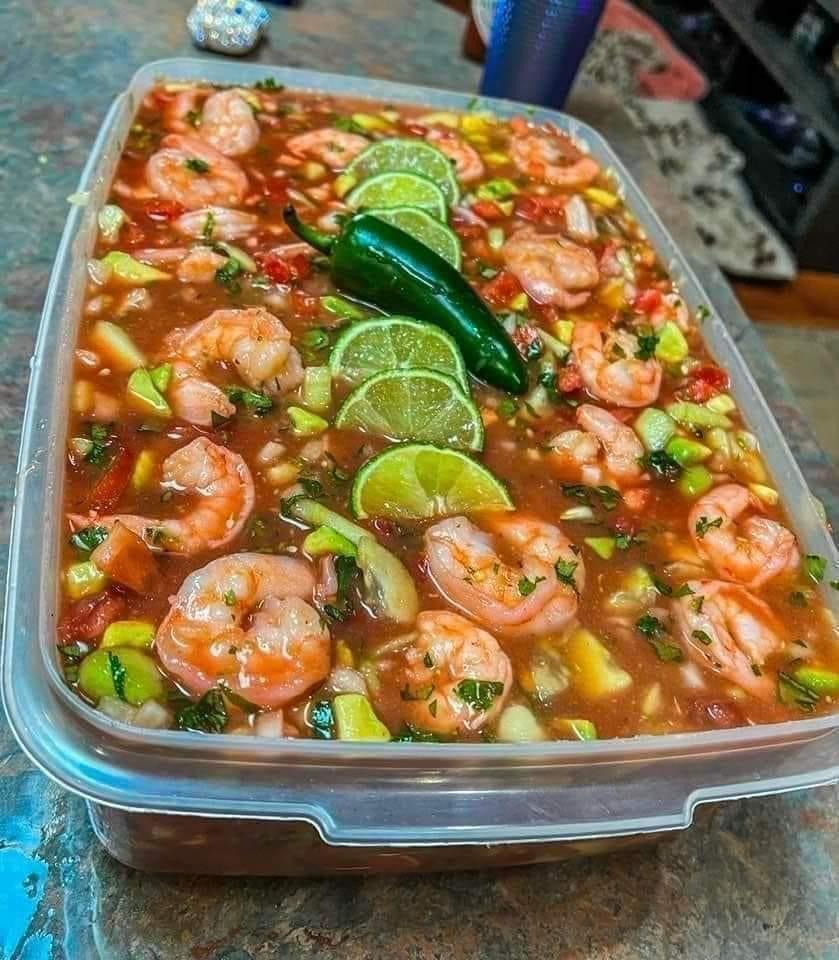 2. In large bowl combine shrimp, celery, jalapeรฑo, cucumber, avocado, cilantro and onion.