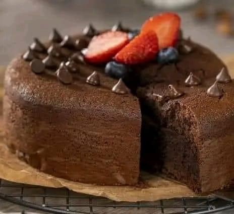 Transfer the mixture to a greased cake mold with a diameter of 25 cm and fill up to ยพ high. Bake the flourless chocolate cake at 350ยฐF for 60 minutes. Remember that it should form a cracked crust on the outside and it should be slightly moist on the inside.