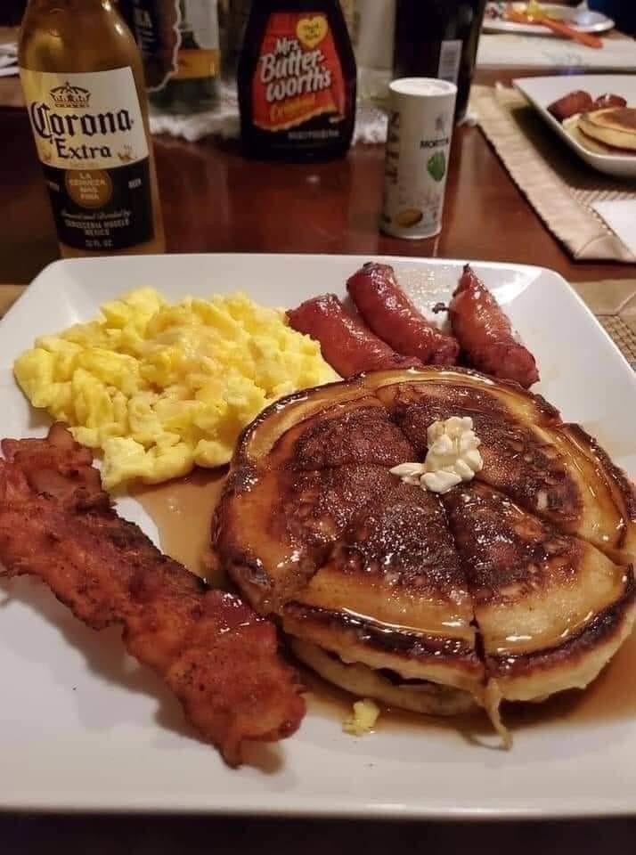 3 Heat a large skillet over medium to high heat. Spray with cooking spray. Pour batter into hot skillet, about 1/4 cup batter per pancake. Cook for 2 to 3 minutes, until bubbles appear on the sides and center of each pancake. Flip and leave until golden, about 1 to 2 minutes.