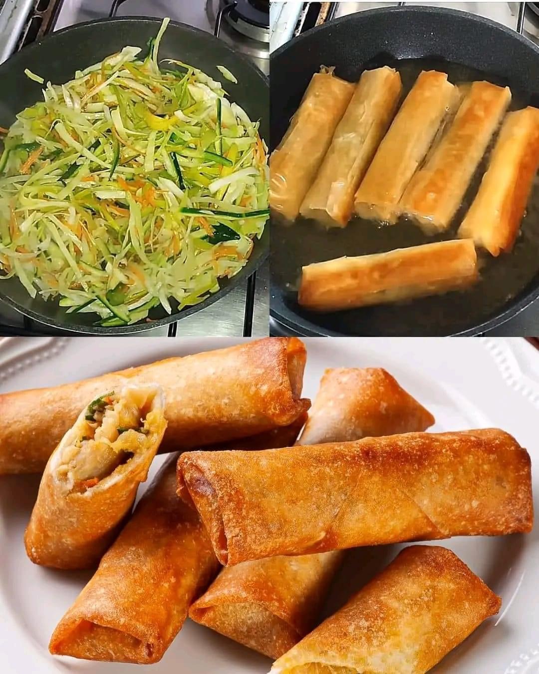 To form the lumpias, spread out the rice paper or dough, then add the portion of filling you want and wrap to make the roll. Next, start frying them for 2 minutes in a pan with enough oil and place them on absorbent paper to remove all the excess oil.