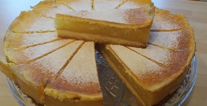 Fรผr den Guss die Eier trennen und das EiweiรŸ zu steifem Schnee schlagen. Eigelb, Schmand und Zucker miteinander verrรผhren und den Eischnee unterheben. Den Guss auf dem Kuchen gleichmรครŸig verteilen und weiter backen, bis der Guss goldgelb ist.