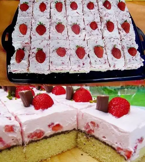 Die Erdbeeren unterrรผhren und die Schlagsahne vorsichtig unterheben.