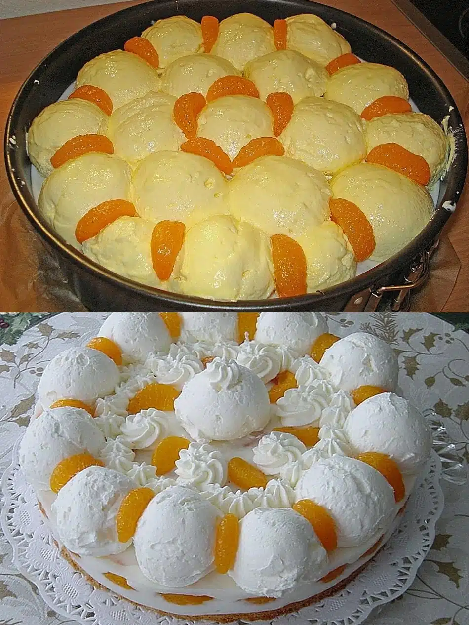 Die Gelatine einweichen, die Mandarinen abtropfen lassen und den Saft aufheben. Einige Mandarinen fรผr die Dekoration aufheben. Joghurt, Vanillinzucker, Zucker und 125 ml Mandarinensaft miteinander verrรผhren. Die ausgedrรผckte Gelatine auflรถsen, unter die Joghurtcreme rรผhren und die Mandarinen unterheben. Einen Tortenring um den Boden legen, die Joghurtcreme darauf geben und die Torte 30 Minuten kรผhl stellen.