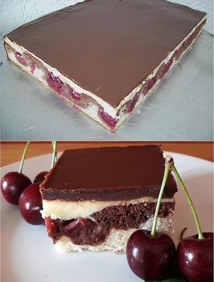 5. Die Hรคlfte des Teiges auf das Blech streichen. Den รผbrigen Teig mit Kakao und Milch verrรผhren und vorsichtig darรผber streichen. Die Kirschen darauf verteilen und im vorgeheizten Ofen ca. 25 โ 30 min. backen.