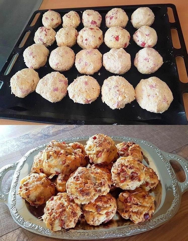 Mehl, Quark, Backpulver, Milch, Öl, Salz und Zucker gut verkneten. Die übrigen Zutaten zum Teig geben. Noch mal durchkneten und kleine Bällchen formen. Auf ein Backblech mit Backpapier legen und für 30 – 40 Min. bei 180 Grad in den Ofen.