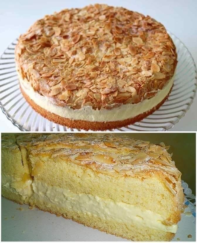 2 In der zwischenzeit die Zutaten fรผr die Mandelhaube (auรer die Mandeln) in einen Topf geben und aufkochen lassen. Wenn der Zucker geschmolzen ist die Mandeln unterrรผhren und auf dem Kuchen verteilen. Weitere 10-15min backen.