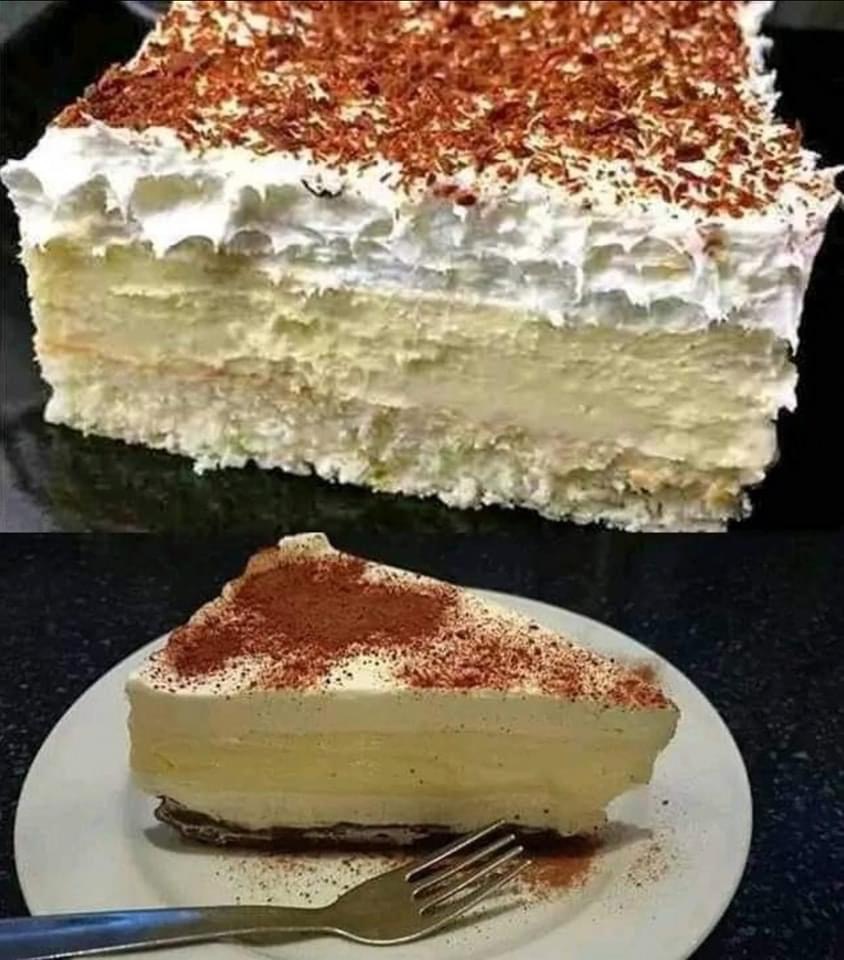 5. Sind alle Schichten schรถn auf dem Keksboden verteilt, wird die Torte mit Kakaopulver oder Schokoraspeln bestรคubt.