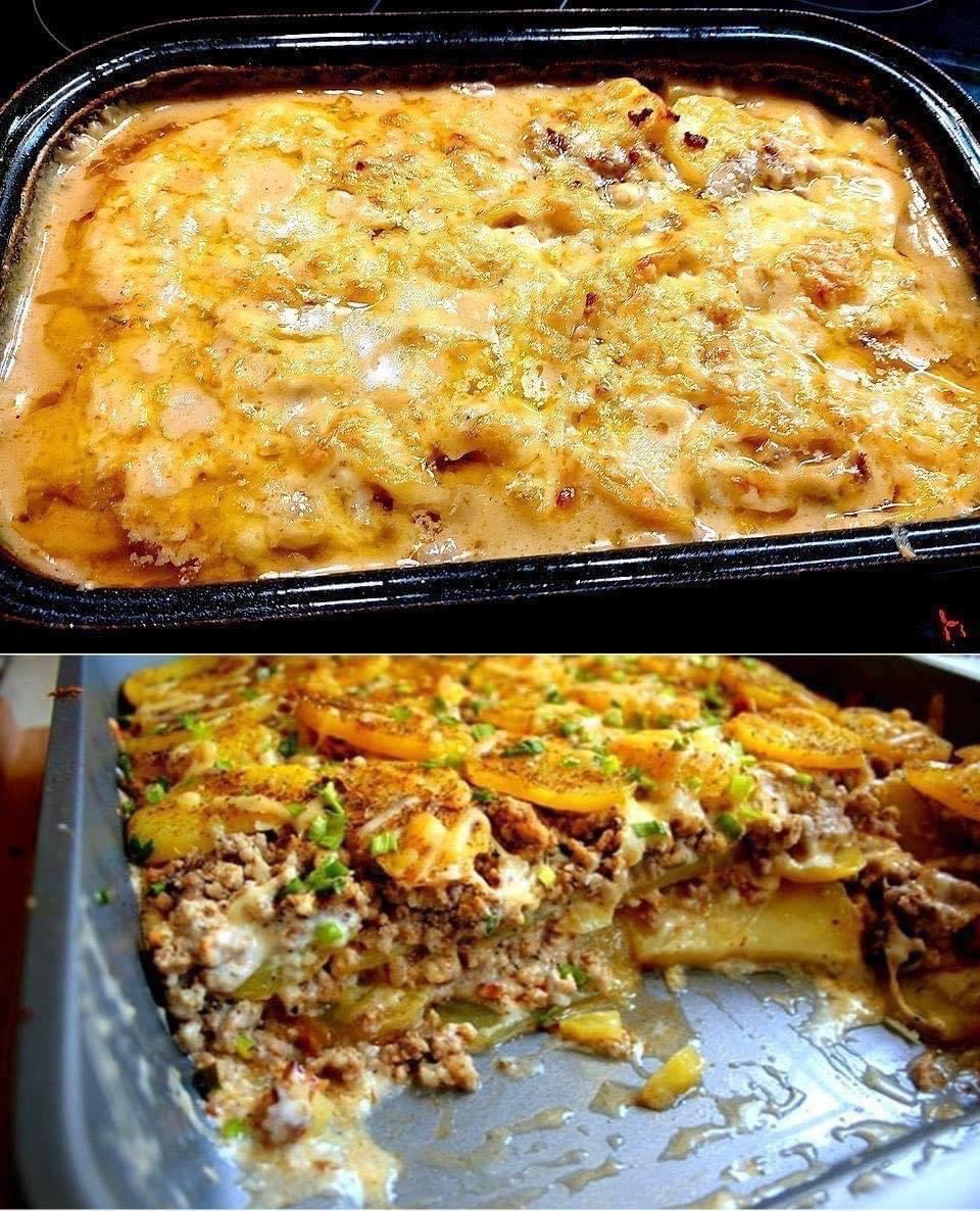 9.In eine Auflaufform 1. Schicht das Hackfleisch geben