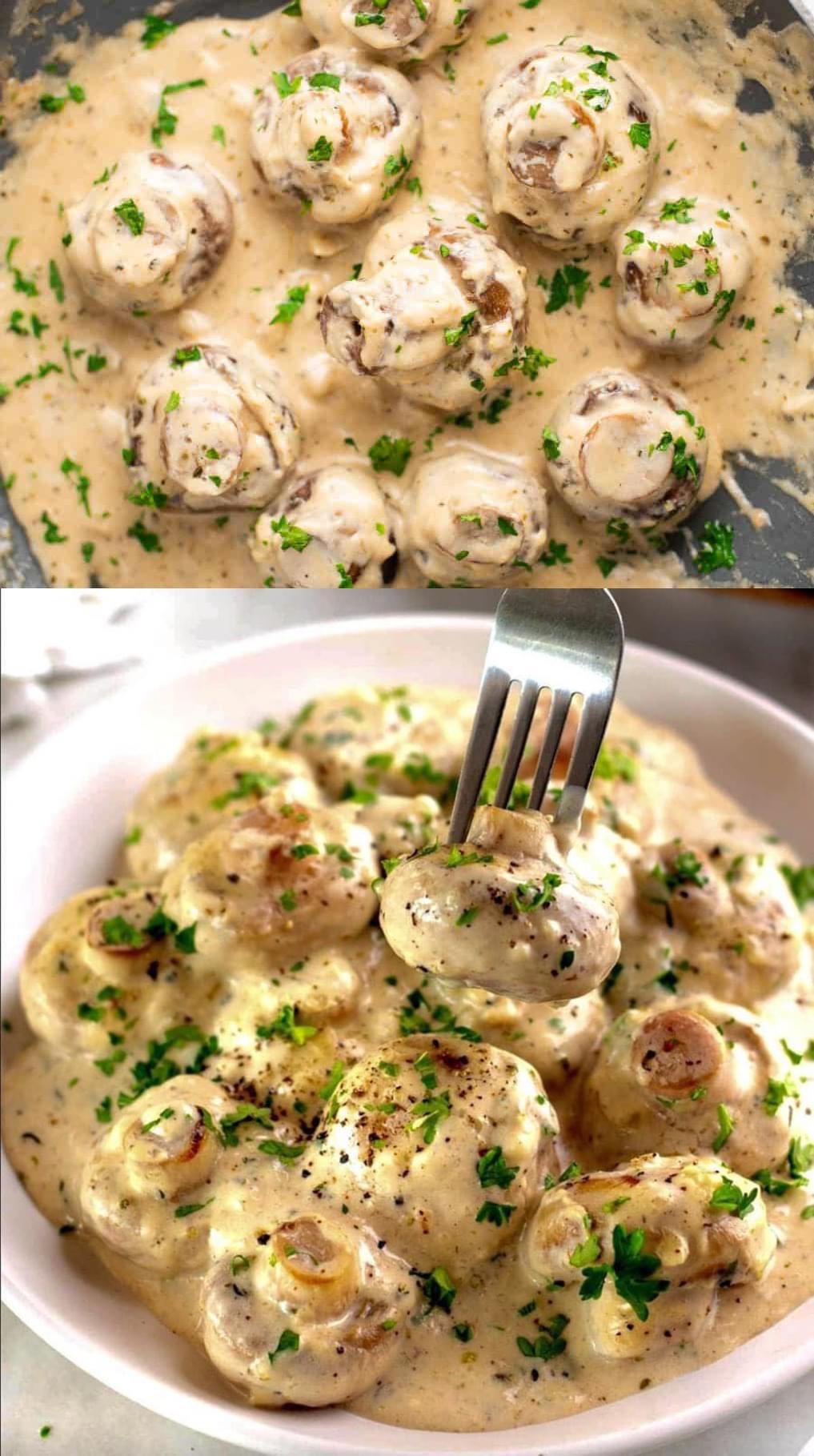 1. Geben Sie in einer großen 12-Zoll-Pfanne das Olivenöl, die Butter, den Knoblauch und die Pilze bei mittlerer Hitze hinzu, bis die Pilze weich sind (ca. 5 Minuten).
