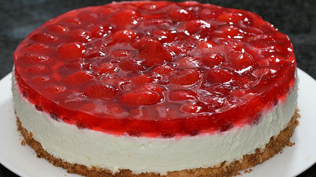 Den Boden mit Lรถffelbiskuits auslegen, die Creme verteilen, mit klein geschnittenen Erdbeeren belegen, wieder Lรถffelbiskuits darauf legen und so lange weiterschichten, bis alle Zutaten verbraucht sind. Die Torte mit halbierten Erdbeeren verzieren und mit dem etwas abgekรผhlten Tortenguss รผbergieรen. In den Kรผhlschrank stellen und fest werden lassen