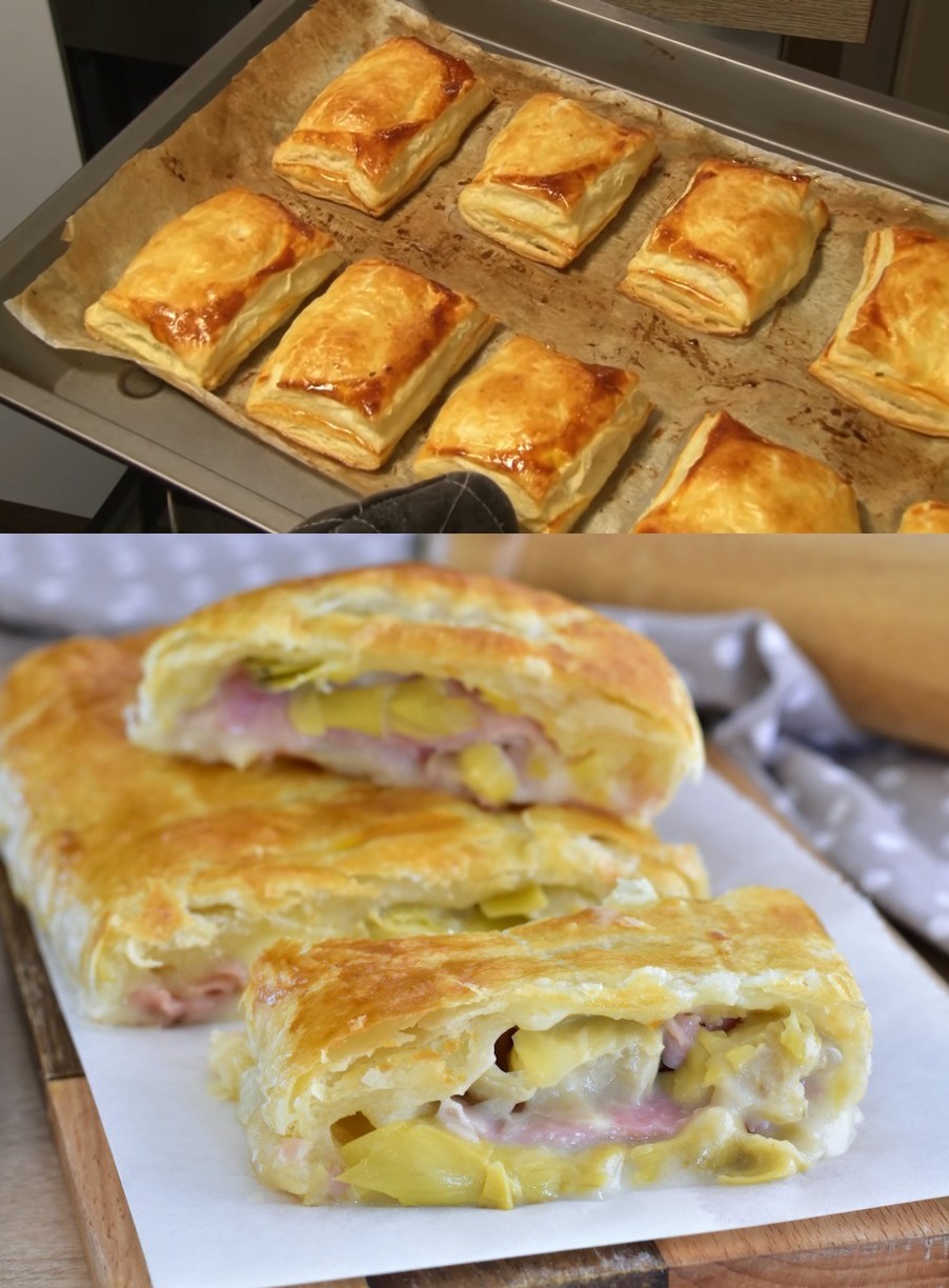 Zubereitung Taschen gefüllt mit Schinken und Käse :