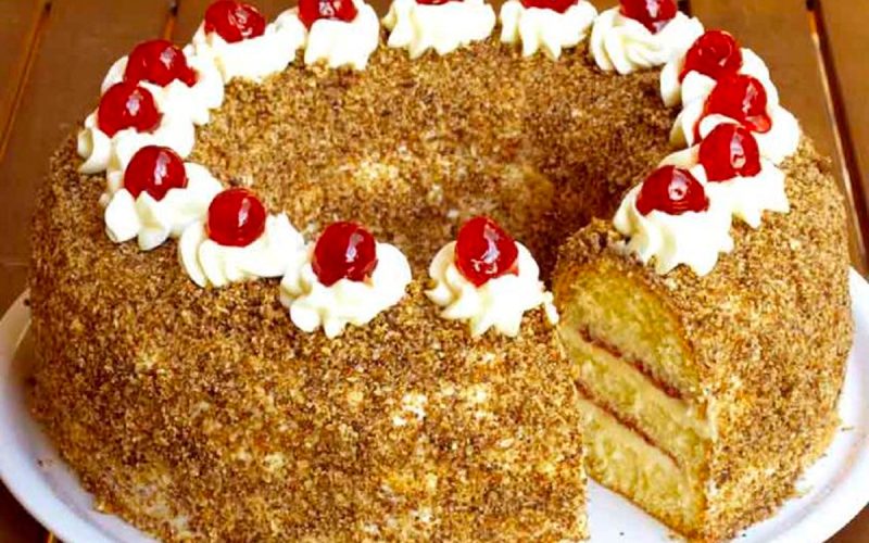 Den Boden auskühlen lassen und 2x durchschneiden.
