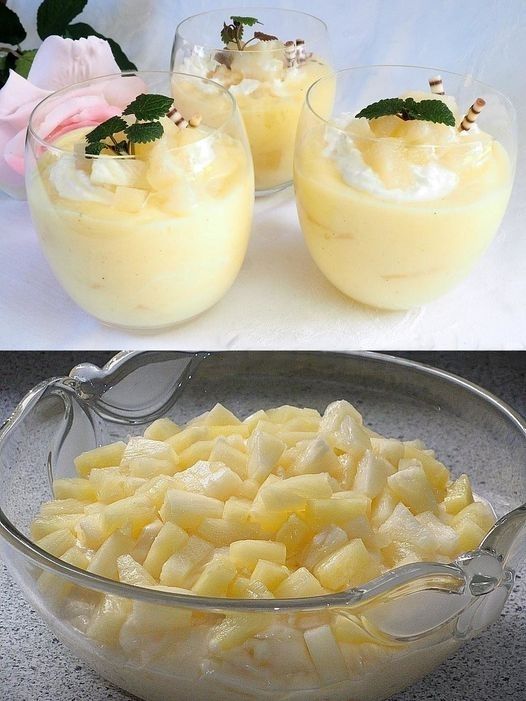 Dann die klein geschnittenen Ananasstรผcke unterheben und ganz abkรผhlen lassen.