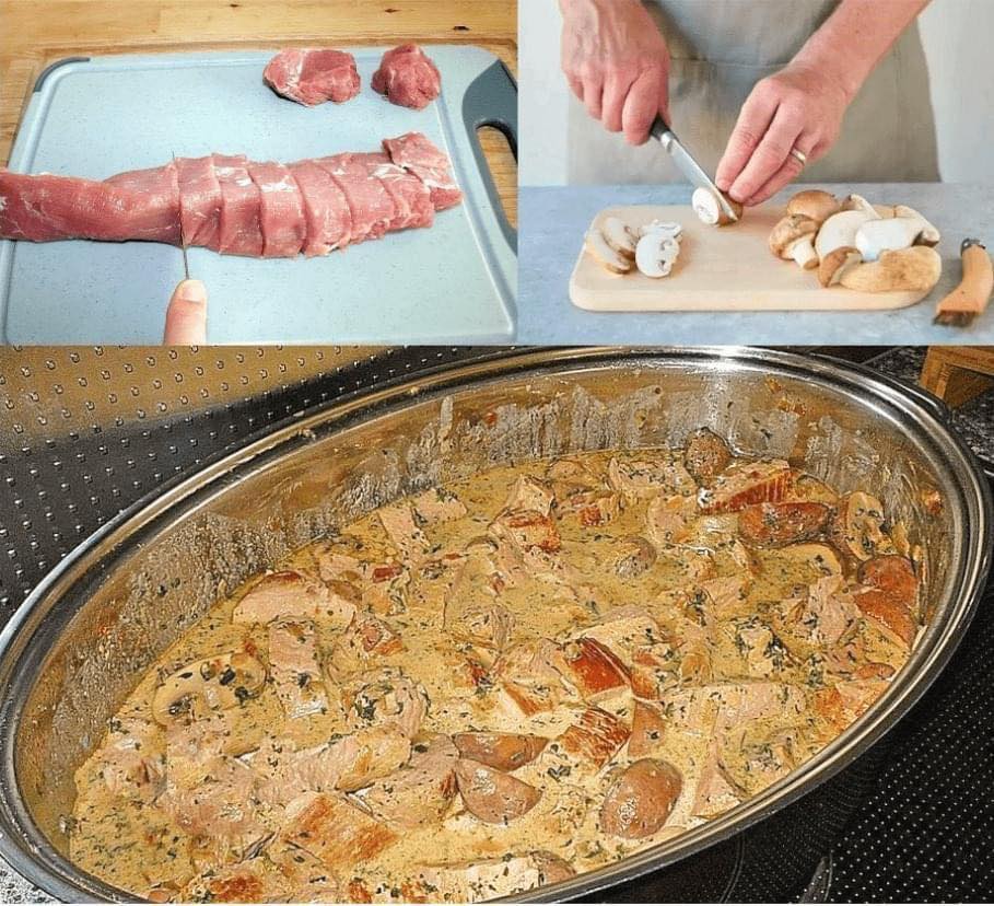 Die Champignons putzen und in Scheiben schneiden. Wenn es sehr kleine Champignons aus dem Glas sind, kรถnnen sie ganz bleiben. Champignons mitbraten. Dann mit Brรผhe ablรถschen und Sahne und Crรจme fraรฎche oder Schmand und den ausgetretenen Fleischsaft zugeben. Die Soรe mit Salz, Pfeffer, Tomatenmark und Senf krรคftig abschmecken. Sollte sie zu flรผssig sein, etwas Speisestรคrke in wenig kaltem Wasser anrรผhren und unter Rรผhren zur kochenden Soรe geben, bis zur gewรผnschten Konsistenz. Soรe abkรผhlen lassen.