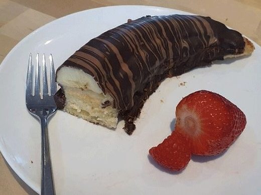 Immer 2 Streifen nehmen die erste mit Creme bestreichenโฆ Die 2 drauflegenโฆ Wieder Creme drauf streichenโฆ Dann die halbierte Banane drauf legen und dann mit schoki รผbergieรen.. Ich habe das mit ner sossen Kelle gemacht โฆMan braucht ne Menge mind. 3 Becher kakao glasur