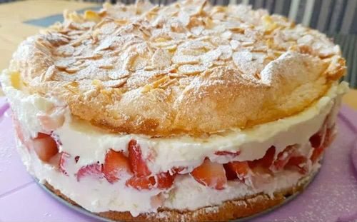 Die Hรคlfte des Eischnees auf den ersten Tortenboden streichen, mit der Hรคlfte der Mandelblรคttchen bestreuen. Im vorgeheizten Backofen bei ca. 175 ยฐC etwa 20 โ 25 Minuten backen. Mit dem zweiten Boden genauso verfahren. Beide Bรถden gut auskรผhlen lassen.