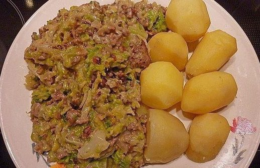 Beginnen Sie mit der Vorbereitung des Gemรผses. Schรคlen Sie zuerst die Zwiebel und den Knoblauch und wรผrfeln Sie sie fein. Was den Wirsing angeht, halbieren Sie ihn zunรคchst, teilen Sie ihn dann in Viertel und entfernen Sie den Strunk. Schneiden Sie den Wirsing anschlieรend in schmale Streifen.Nun, geben Sie das Sonnenblumenรถl in eine Pfanne und erhitzen Sie es. Braten Sie das Hackfleisch bei hoher Hitze zusammen mit den Zwiebeln scharf an, bis es krรผmelig ist. Fรผgen Sie den gewรผrfelten Knoblauch hinzu und lassen Sie alles fรผr weitere 1-2 Minuten scharf anbraten. Wรผrzen Sie die Mischung anschlieรend mit Salz und Pfeffer.Geben Sie das Paprikapulver zur Fleischmischung in der Pfanne hinzu und rรถsten Sie es kurz mit. Gieรen Sie danach die Gemรผsebrรผhe hinzu. Fรผgen Sie nun die vorbereiteten Wirsingstreifen zur Pfanne hinzu und lassen Sie alles fรผr etwa 5 Minuten kรถcheln, bis der Wirsing weich und gut durchgegart ist.Wรคhrend das Ganze kรถchelt, bereiten Sie die Petersilie vor. Zupfen Sie die Blรคtter von den Stรคngeln und hacken Sie sie grob. Gieรen Sie die Sahne in die Pfanne und lassen Sie die Mischung eindicken, bis sie eine sรคmige Konsistenz erreicht hat. Abschlieรend schmecken Sie alles nochmals mit Salz und Pfeffer ab und bestreuen es mit der gehackten Petersilie.