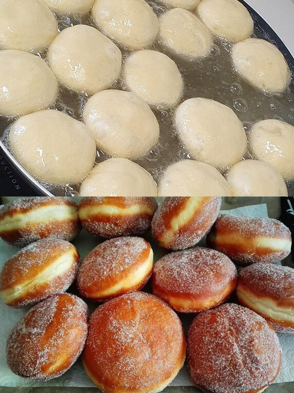 รl oder Fett auf 180 ยฐC erhitzen. Die Teigkugeln darin portionsweise frittieren, dabei wenden. Herausnehmen, abtropfen und abkรผhlen lassen (am besten auf Kรผchentรผchern).