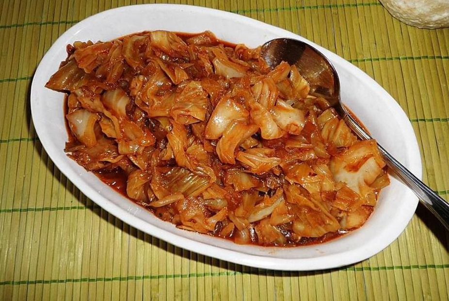 2. Danach wird etwas Öl in einer Pfanne erhitzt, der Kohl mit einer halben Tasse Wasser hinzugefügt und mit einem Deckel zugedeckt.