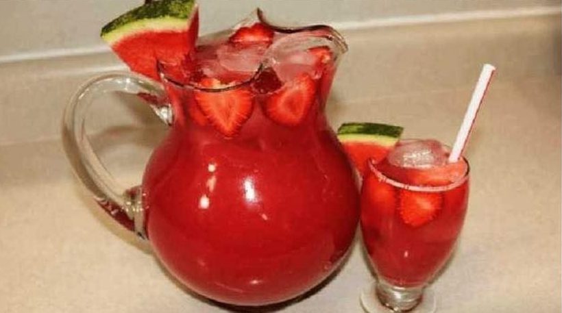 Jetzt die Frรผchte mit 1er Flasche Mineralwasser und dem Erdbeersirup in eine grosse Schรผssel geben, alles gut verrรผhren und etwa 3 bis 4 Stunden im Kรผhlschrank ziehen lassen,