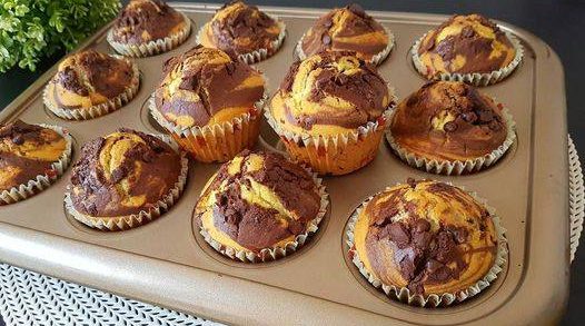 - Alles außer Schokolade in einer Schüssel mischen und in Muffinförmchen füllen.