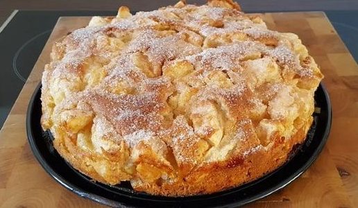 - รpfel in groรe Stรผcke schneiden und vorsichtig unter den Teig heben.