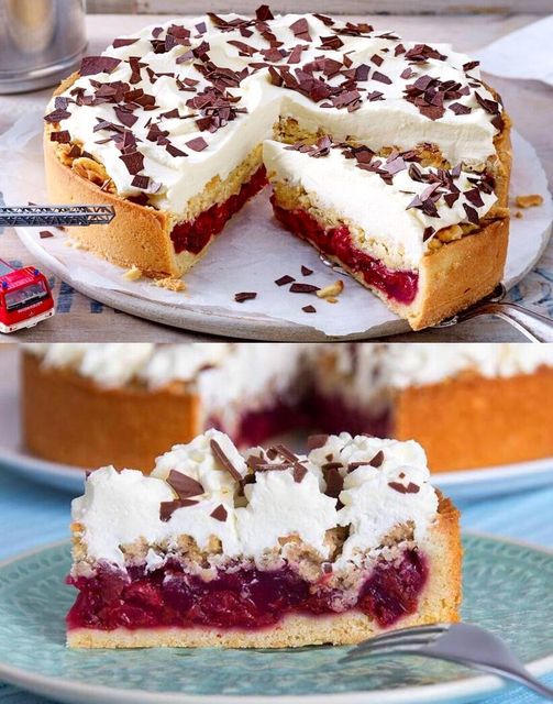 4 Springform auf einen Kuchenrost stellen. Kirschfรผllung auf dem vorgebackenen Tortenboden verteilen. รbrige Streusel gleichmรครig auf der Kirschfรผllung verteilen. Kuchen weiterbacken.