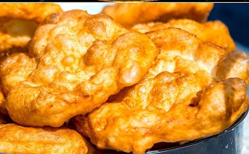 3. Den Teig in 6 Stücke teilen, zu Kugeln formen und mit der Hand zu dünnen Fladen auseinander ziehen, wobei der Rand etwas dicker als die Mitte sein sollte. In einer beschichteten Pfanne Öl erhitzen und die Lángos in ca.2-3 Minuten pro Seite hellbraun ausbacken.