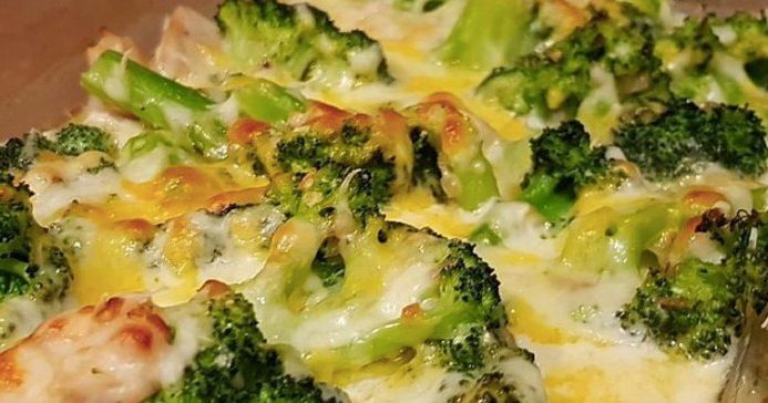 3. Dann die Hähnchenfilets in eine Auflaufform legen, Brokkoliröschen und Champignons dazugeben und mit der Käsesoße übergießen. Mit dem Käse bestreuen und bei 190°C für 25 bis 30 Minuten ab in den Ofen.