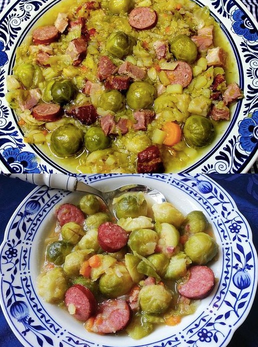 Inzwischen Rosenkohl putzen und halbieren sowie 1 groรe Steckrรผbe schรคlen und in Wรผrfel schneiden!