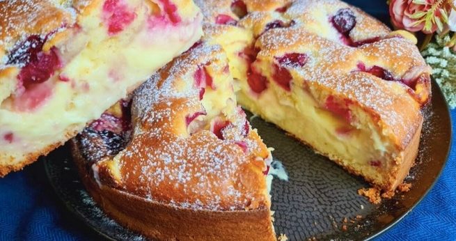 Als nachstes den Pudding auf dem Teig verteilen. Abgetropfte Kirschen darauf verteilen. Mit Mandelblรคttchen bestreuen.