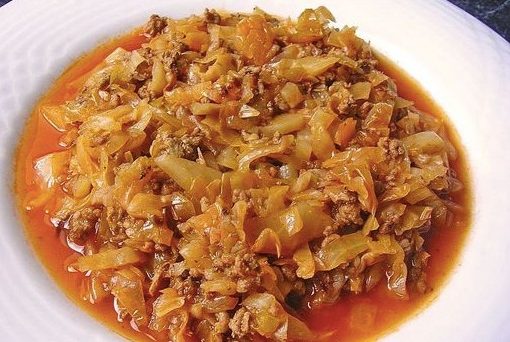 Das Gehackte so lange krรคftig anbraten, bis es krรผmelig ist. Zwiebel wรผrfeln, Knoblauch durchpressen und beides zum Hackfleisch geben, wenn es schรถn braun gebraten ist. Weiter braten, bis die Zwiebel goldbraun ist. Den Weiรkohl in grobe Wรผrfel schneiden und zum Hackfleisch geben. Weiter braten, bis der Kohl leicht braun wird. Ca. 3 EL Tomatenmark (wenn nicht da, nehme ich alternativ Tomatenketchup) dazugeben und auch noch mit anbraten. Ca 1 l Wasser angieรen und mit Salz und Pfeffer wรผrzen. Deckel schlieรen und auf kleiner Flamme ca. 30 Min. kรถcheln lassen. Mit Saucenbinder etwas abbinden.