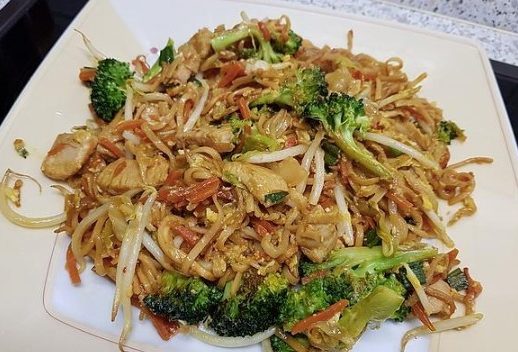 Das Fleisch und die Sojasprossen hinzufügen und in der Hitze kurz untermischen. Etwas weißen Pfeffer und ein bisschen Sesamöl (ca. 1/2 – 1 TL) hineinmischen und servieren.