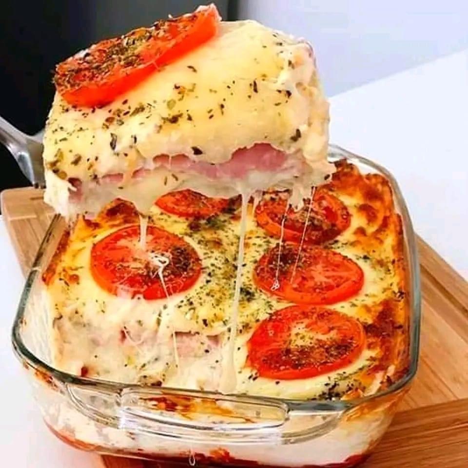 this one, finishing with white cream, mozzarella, sliced โโtomatoes and sprinkling oregano on top.